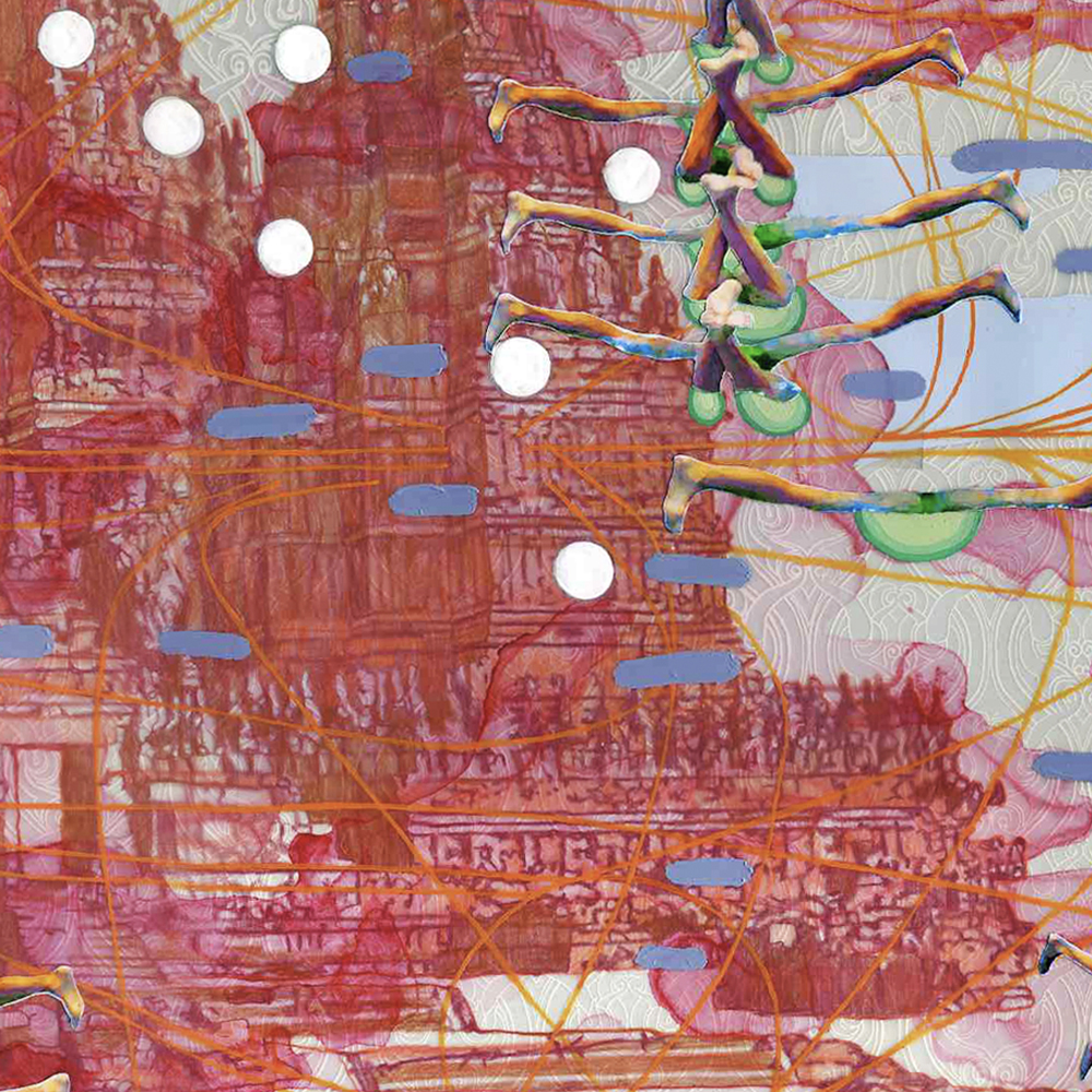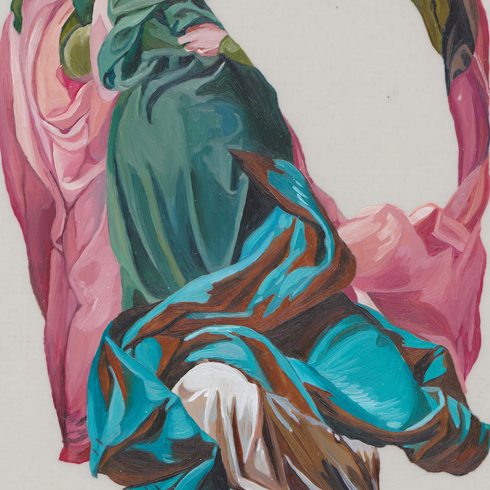 Painted works based on evolving concepts, 2007 (right) to now (left).